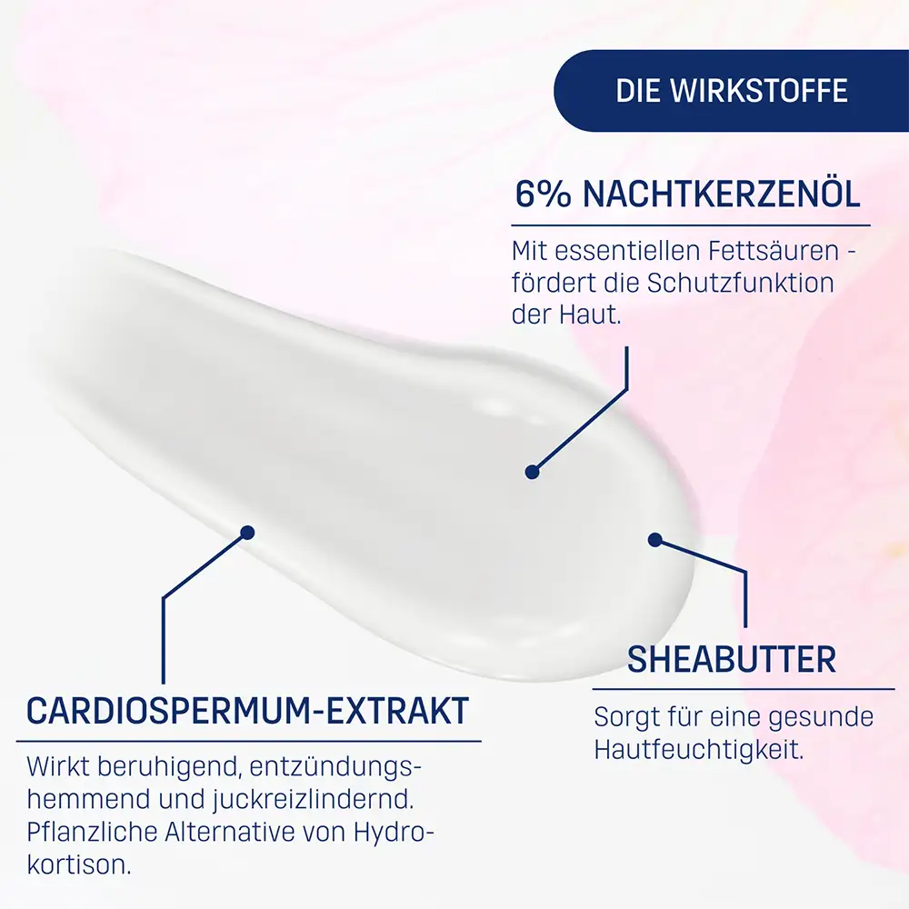 - 6 % Nachtkerzen- und Echiumöl helfen, eine gestörte Hautbarriere zu normalisieren