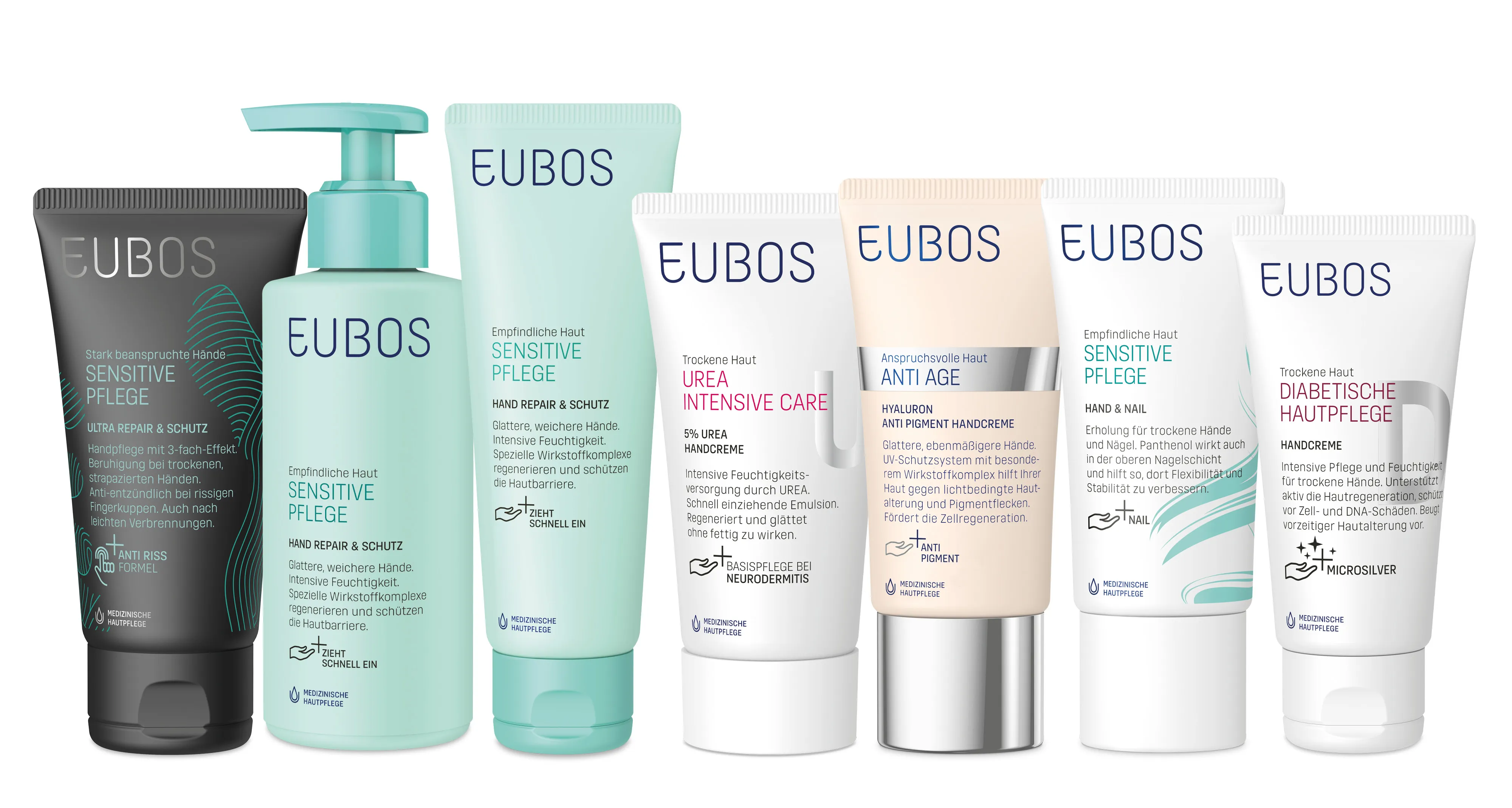 Die SENSITIVE HAND REPAIR & SCHUTZ macht raue Hände fühlbar glatter und weicher. Weitere vier Handcremes schützen sensible Haut und stärken die Nägel, wirken gegen unregelmäßige Hautpigmentierungen und schützen vor lichtbedingter Hautalterung oder spenden Feuchtigkeit mit Urea – Therapie begleitend bei Neurodermitis, Psoriasis oder Diabetes.