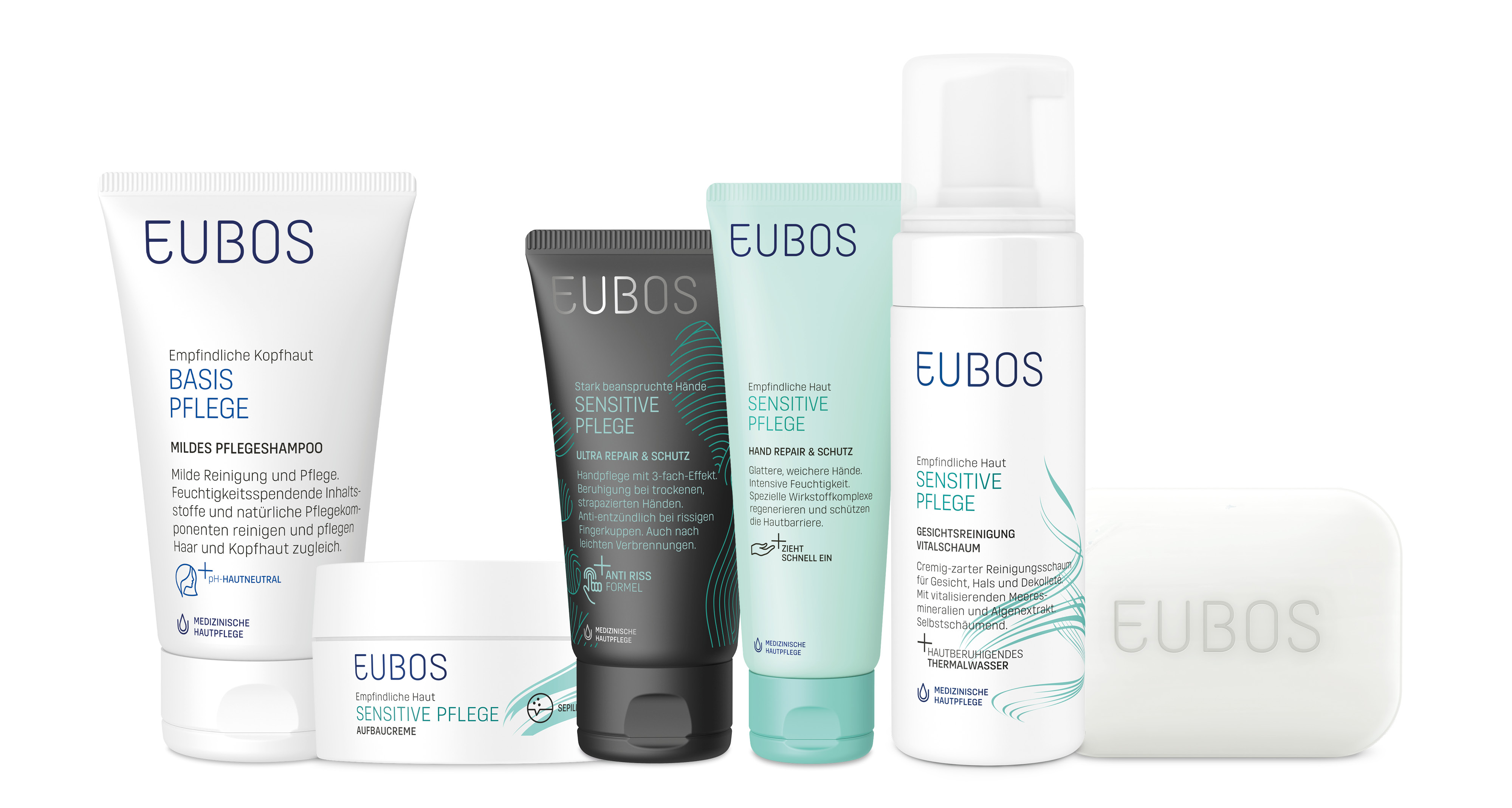 Dafür sorgt zum Beispiel das Thermalwasser aus den Pyrenäen in der EUBOS-Serie SENSITIVE PFLEGE. Es beruhigt sensible und irritierte Haut und stärkt die Hautbarriere – konsequent von der Kopfhaut bis zu den Füßen. Die BASISPFLEGE ohne Parfüm ist perfekt für alle, die auf Duftstoffe verzichten müssen und sich eine sanfte Pflege wünschen: seifenfreie Reinigung und beruhigende, schützende und feuchtigkeitsspendende Pflege ganz ohne unnötige Inhaltsstoffe.
