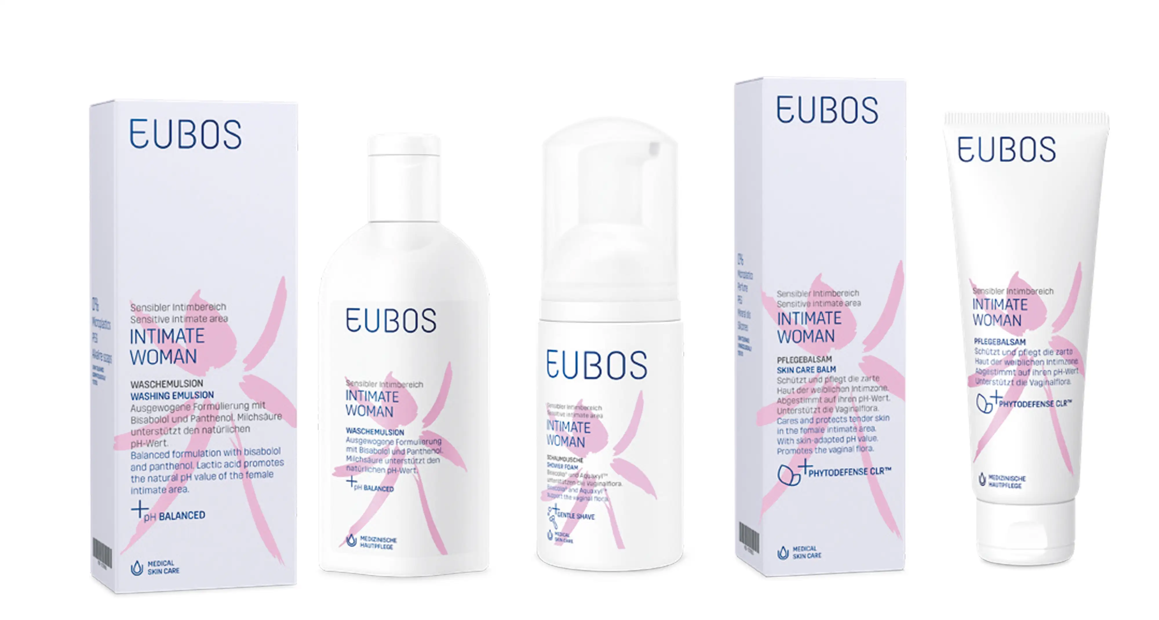 Sie kann deutlich mehr als Wasser: Die EUBOS-Serie INTIMATE WOMAN ist Spezialistin für die empfindliche Haut der Intimzone. Abgestimmt auf den pH-Wert der Frau unterstützt die MILDE SCHAUMDUSCHE den natürlichen Säureschutzmantel und mindert Hautreizungen bei der Rasur. Nach der Dusche spendet der PFLEGEBALSAM Feuchtigkeit, beruhigt die Haut und gibt das gute Gefühl, frisch und gepflegt unterwegs zu sein.